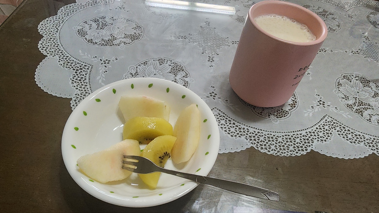 나는 집에서 아침에 바나나우유를 해먹는다. 사서 먹는 바나나우유는 당분이 많지만, 집에서 두유제조기로 우유랑 진짜 바나나를 넣어 만드는 바나나우유는 건강식이고 맛도 좋다. 여기에 복숭아랑 키위까지 같이 먹으면 금상첨화이다.