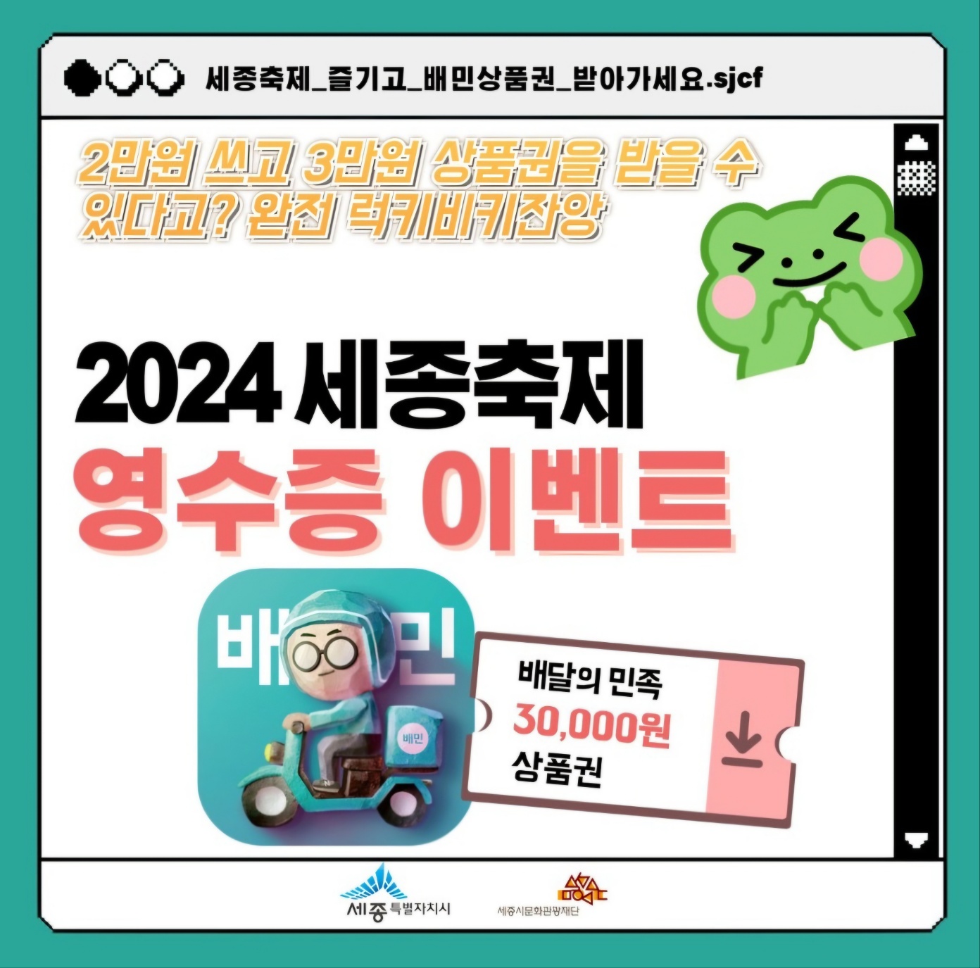 1) 축제 기간 동안 세종 지역 내 2만 원 이상 사용한 영수증 챙기기