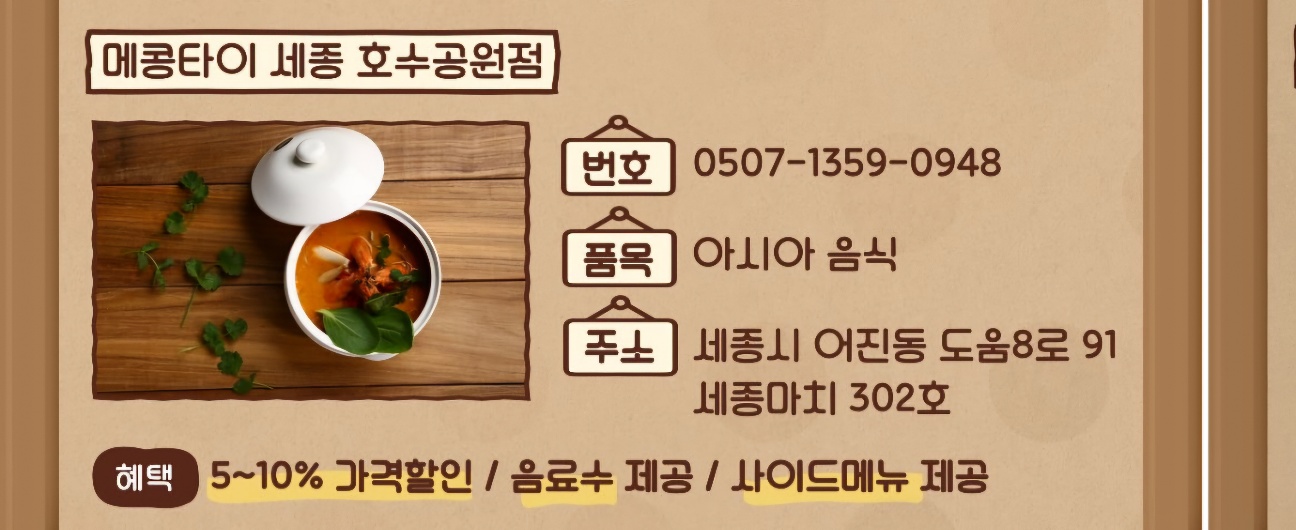 세종축제 기간 동안 영업장에 방문하면 다양한 할인 혜택이 있습니다!